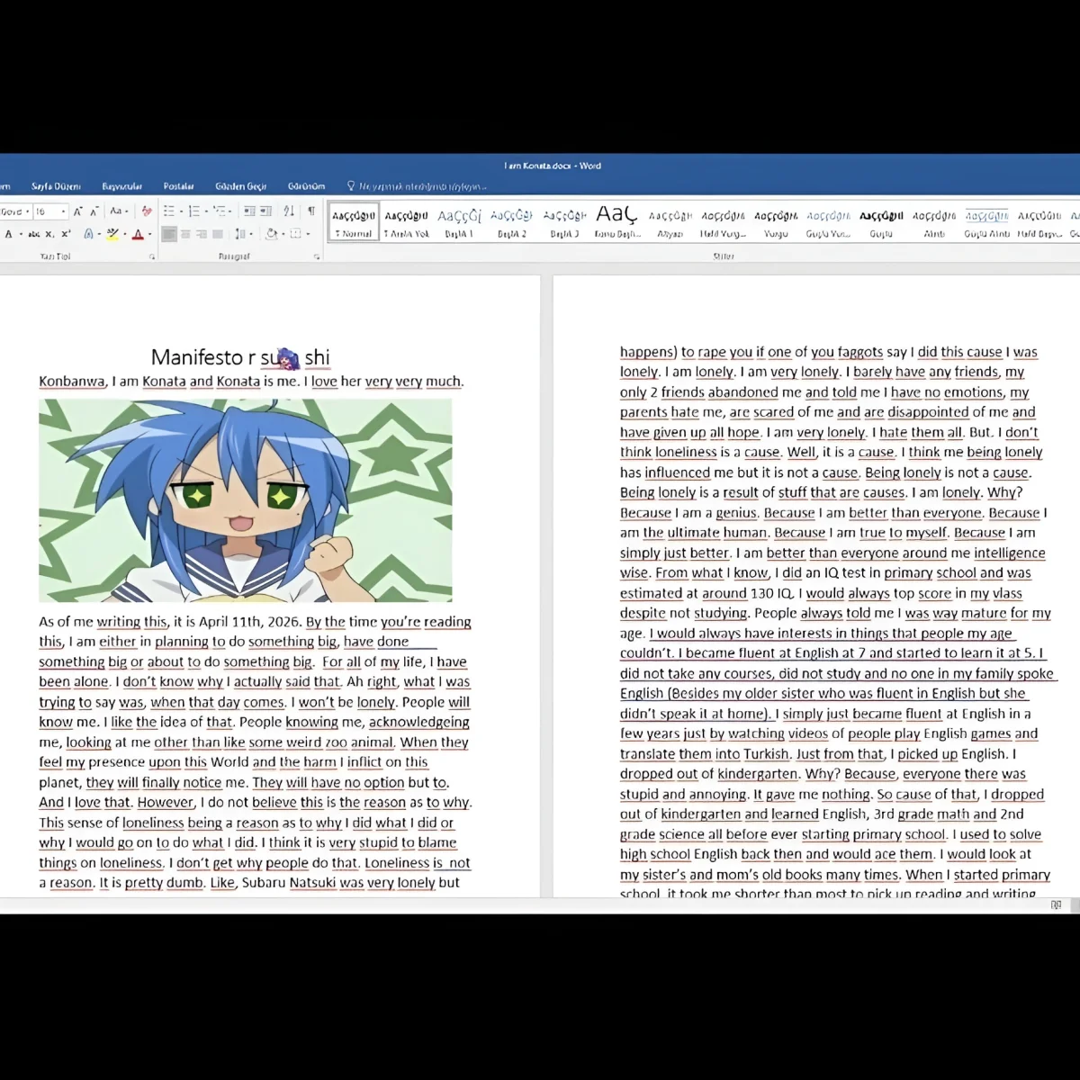 En el documento escrito en inglés días antes del ataque, el chico vomitó todo su resentimiento contra el mundo. Habló de su soledad, de sentirse incomprendido por su propia familia y de su enorme desprecio por sus compañeros y el sistema educativo. El detalle que heló la sangre a la comunidad fue cuando comparó directamente su miserable realidad con el protagonista del anime Re:Zero, escribiendo textualmente que se sentía "muy solo, justo como Natsuki Subaru". Todo esto mientras afirmaba tener un coeficiente intelectual superior, en un evidente delirio de grandeza y contradicciones que intentaban justificar su atroz crimen.